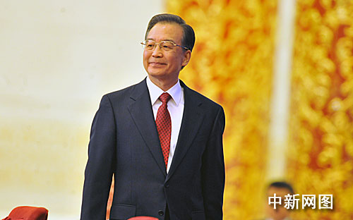 温家宝总理阔步走进金色大厅。中新社记者 贾国荣 摄