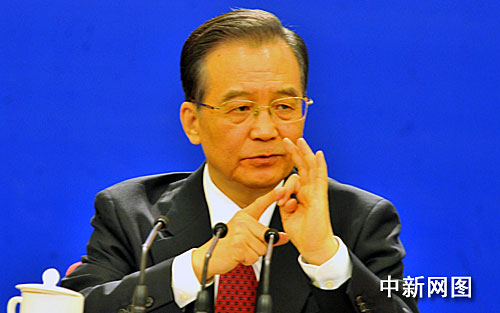 图为国务院总理温家宝回答中外记者提问。中新社记者 贾国荣 摄