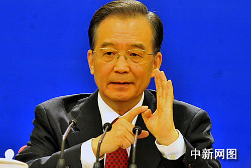 图为国务院总理温家宝回答中外记者提问。中新社记者 贾国荣 摄