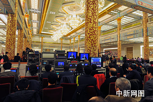 图为电视台的记者在紧盯导播台上的屏幕。中新社记者 贾国荣 摄