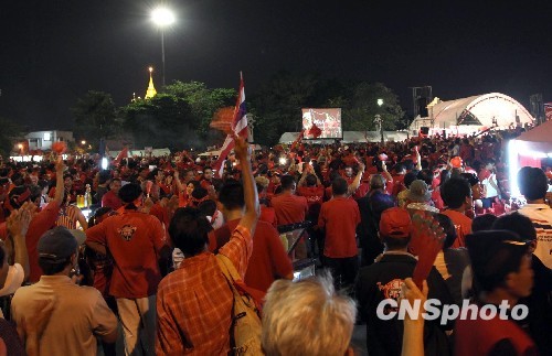 图:泰国近十万“红衫军”夜集曼谷示威(2)