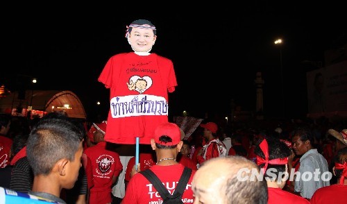 图:泰国近十万“红衫军”夜集曼谷示威(4)