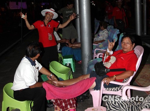 图:泰国近十万“红衫军”夜集曼谷示威(5)