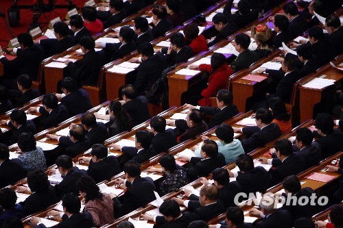 图为代表按下表决器,表决通过选举法修正草案。中新社发 杜洋 摄