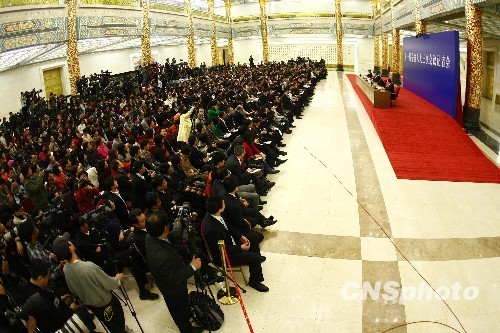 3月14日,十一届全国人大三次会议闭幕,温家宝总理举行记者发布会答中外记者问,吸引众多媒体参加。中新社发 杜洋 摄