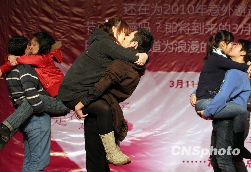 图为激吻大赛现场。中新社发 赵敬东 摄