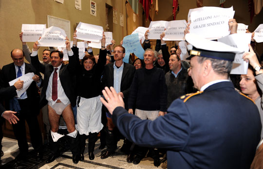 图:罗马市政官员脱裤子抗议 呼吁新制(2)