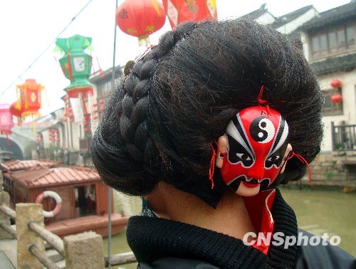 图:江苏女孩“脸谱”发饰引人目光(2)