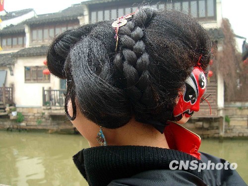 图:江苏女孩“脸谱”发饰引人目光(3)