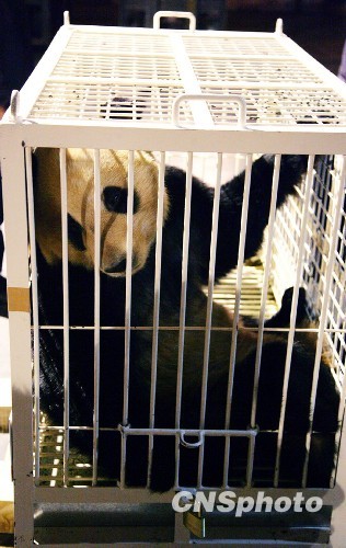 3月15日晚,旅日大熊猫“幸浜”搭乘全日空航空NK955次航班抵达北京。北京海关关员迅速为装有大熊猫的货柜办理了转关手续,这标志着出生在日本的中国大熊猫“幸浜”平安归国。中新社发 唐延智 摄