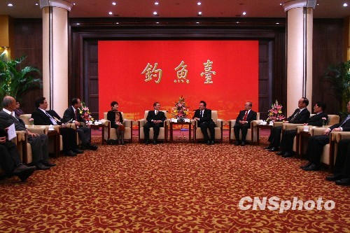 3月16日,海协会会长陈云林在北京会见由饶颖奇先生率领的“2010台湾民意代表交流参访团”一行。中新社发 富田 摄