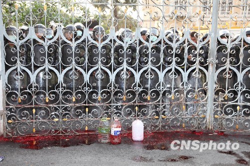 图为洒在总理府铁门前的鲜血。中新社发 顾时宏 摄