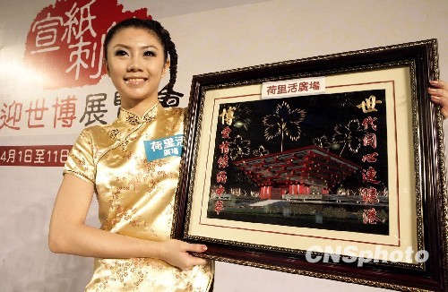 图为模特展示顾玉纯刺绣作品《中华盛世耀港沪》。中新社发 张勤 摄