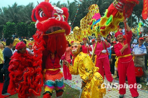 “孙悟空”混在海口“二月二”龙抬头祭海大典活动巡游队伍中。中新社发 善平 摄