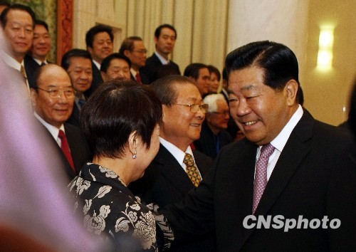 3月18日下午,中共中央政治局常委、全国政协主席贾庆林,在北京人民大会堂会见饶颖奇先生率领的“2010台湾民意代表交流参访团”成员,这个参访表团是应全国政协港澳台侨委员会邀请、于3月16日至3月20日在北京参访。中新社发 宋吉河 摄