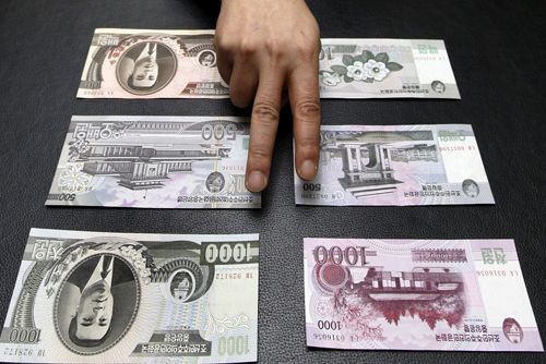 当地时间2010年2月9日,朝鲜货币改革后发行的新币。