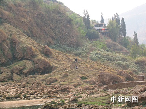 云南省正经历百年不遇的特大干旱天气,世界自然遗产石林景区景观水濒临干涸。图为,大叠水瀑布景区由于水量不足游人寥寥无几,黄土裸露。作者刘云