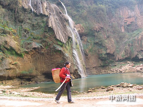 云南省正经历百年不遇的特大干旱天气,世界自然遗产石林景区景观水濒临干涸。图为,由于游客稀少,在景区内为人们的拍照的阿诗玛没有任何生意,只能打道回府。