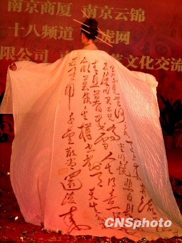 3月19日上午,南京史上规模最大的“婚博会” 在南京国展中心开幕,海内外200家名企争分南京400亿元婚庆“蛋糕”,云锦时装惊艳亮相。中新社发 朱晓颖 摄