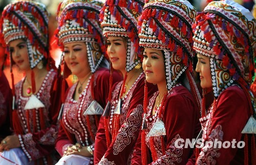 3月19日,新疆阿合奇县柯尔克孜族民众聚集在该县人民广场,欢度柯尔克孜族古老的传统节日——诺肉孜节。根据柯尔克孜族古代天文观念,白羊星是造福人类的“腾格得”(神)之一,而双鱼星则是人畜疾病和其他自然灾害的根源,故此柯尔克孜族人往往挑选双鱼星降落、白羊星升起的时候,举行诺肉孜节,驱赶妖魔和病源,迎接平安和丰收。中新社发 刘新 摄