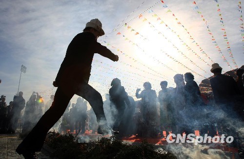 新疆柯尔克孜族民众跨火“驱邪”