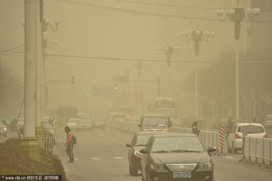 3月19日下午17时许,沙尘天气袭击兰州,兰州大街上的能见度不足千米。冰涵 摄