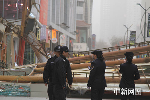 兰州遭遇沙尘暴 大幅广告牌“拔根”倒下(2)