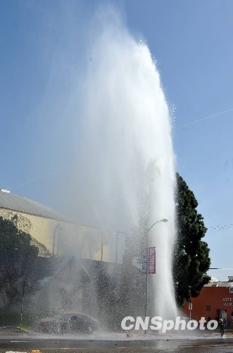 组图:洛杉矶街头车祸引发“大喷泉”(2)