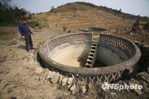 3月19日,自09年9月至今,四川泸州叙永县沿赤水河流域的乡镇未下过一场透雨,目前,旱情还在不断加剧。水库干涸见底,水田干涸龟裂,当地群众要跑四五公里路取水,人畜饮水困难。旱情发生后,当地政府启用应急备用水源,调度辖区内水源,错时错段供应水源,优先保障居民生活用水。同时广泛动员群众采取节水措施,组织人员凿井引水。中新社发 牟科 摄