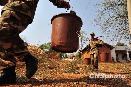 云南干旱持续 武警官兵紧急驰援送水(3)