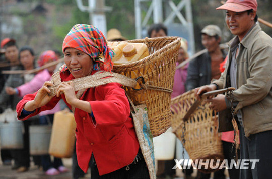 这是云南省红河哈尼族彝族自治州弥勒县五山乡则居村的一名彝族妇女取到水后准备背水回家。