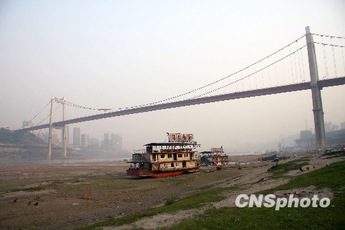 嘉陵江重庆段水位下降 河床裸露渔船搁浅(2)