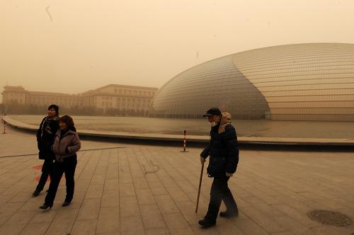 3月22日,几位行人从北京国家大剧院旁走过。新华社记者 金良快 摄
