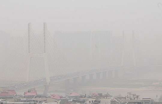 3月22日,南昌整个市区都是灰蒙蒙一片,四周的楼房在浮尘中隐隐约约,头一天傍晚刚刚清洗过的车子上灰头土脸,再看看附近的花草树木,也蒙上了一层厚厚的尘土。王祺/CFP