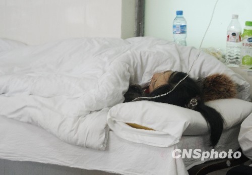 疑因一氧化碳气体泄露中毒的工人正在接受治疗。中新社发 翟李强 摄