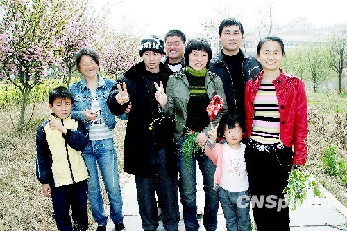 公园里游人纷纷跟网路红人“犀利哥”程国荣合影留念。 中新社发 卓忠伟 摄