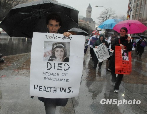 美国医生冒雨游行支持众院通过医改法案 (2)