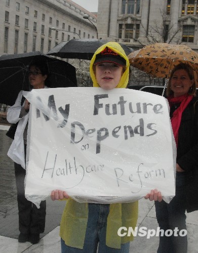 美国医生冒雨游行支持众院通过医改法案 (4)