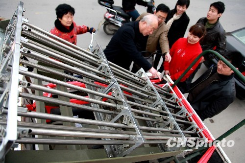 3月23日,河南省许昌市气象局开展科普宣传活动,庆祝“3·23世界气象日”,活动现场亮相的人工增雨防雹作业车和火箭弹,吸引了不少市民参观。