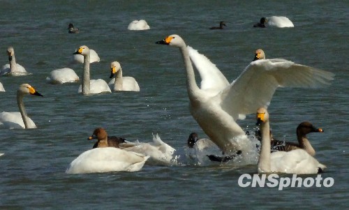 美图:上百只北归回迁天鹅颐和园戏水(2)