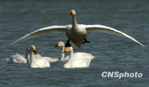 美图:上百只北归回迁天鹅颐和园戏水(3)