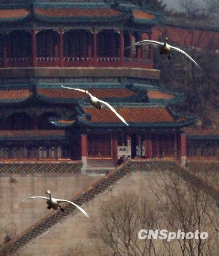 美图:上百只北归回迁天鹅颐和园戏水(6)