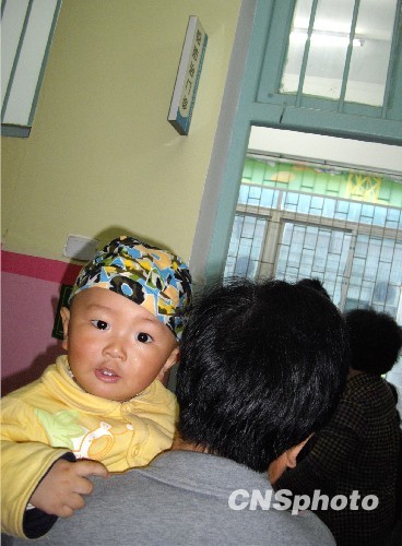 图为一名市民带着小孩在该市血铅检验定点机构郴州市儿童医院铅防治门诊问诊。中新社发 傅煜 摄