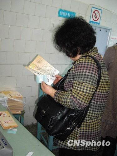 图为一市民在郴州定点血铅检验机构——郴州市儿童医院翻看健康教育宣传单。中新社发 傅煜 摄