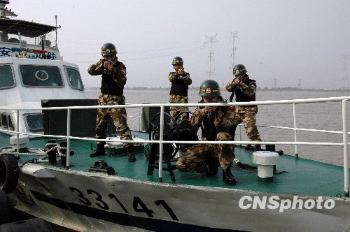3月23日,温州边防官兵进行海上快速跳帮训练。中新社发 吴水斌 摄