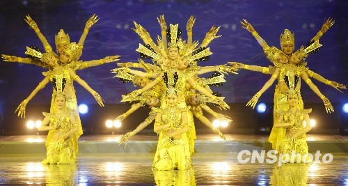 由中国残疾人艺术团、北京残疾人舞蹈学校表演的舞蹈《千手观音》博得全场观众阵阵热烈的掌声。中新社发 田冰 摄
