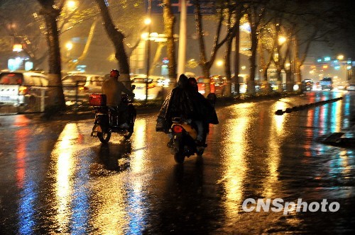 图为行人和车辆在雨中行走。中新社发 吴东俊 摄