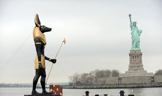 3月23日,一尊埃及阿努比斯神雕像复制品被装载在船上运送到美国纽约。这尊约8米高、7吨重的雕像复制品被送到纽约参加一个名为“图坦卡蒙与法老的黄金时代”的展览。