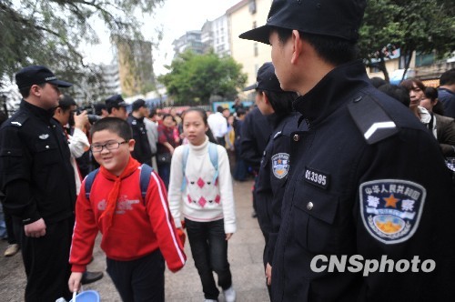 警察在校门口维持秩序。中新社发 卢国华 摄