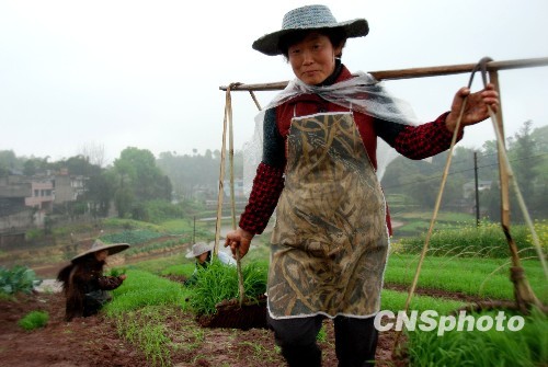 图:四川泸州普降春雨 农民抗旱抢插秧(2)